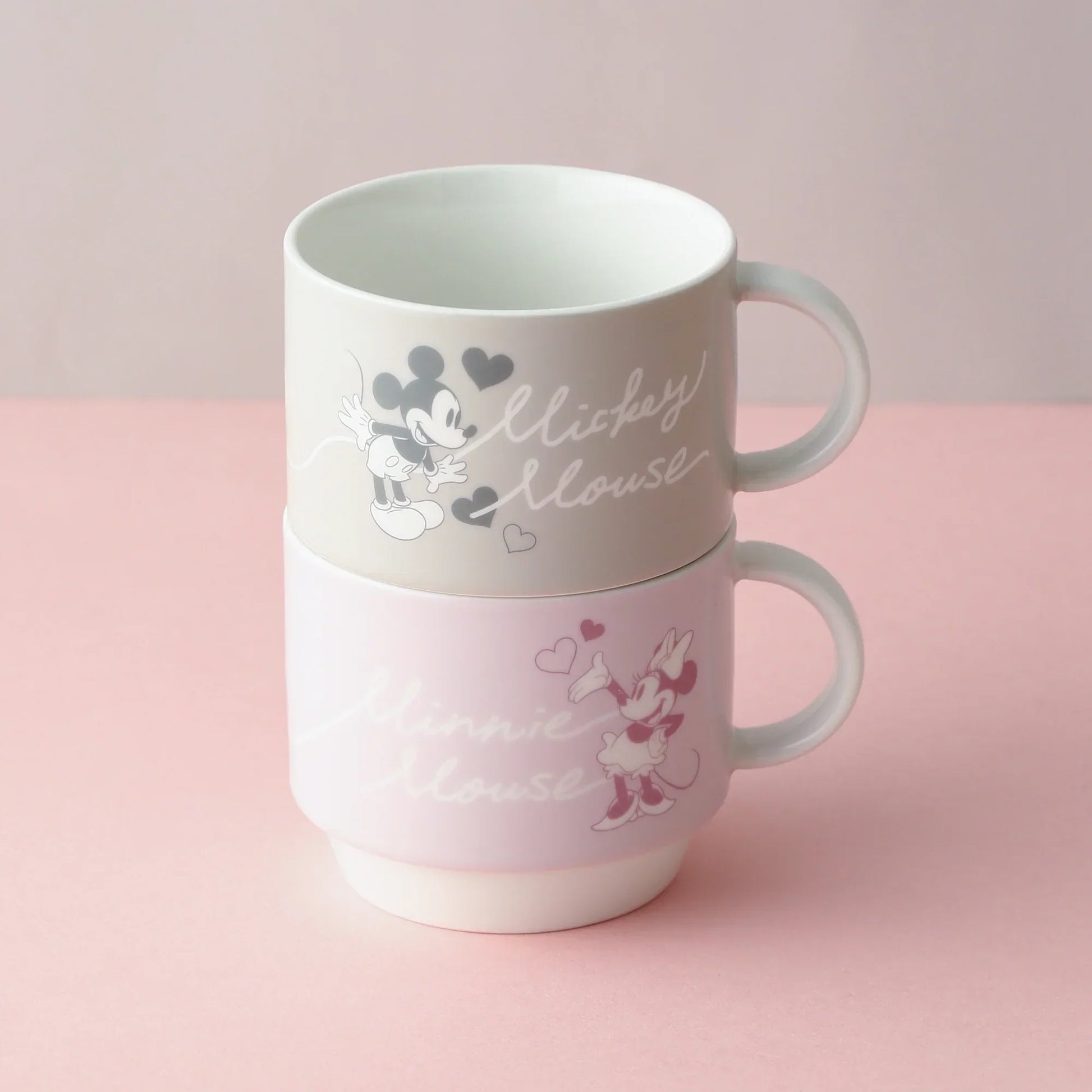 A stacking mug with a cute design with Mickey Mouse and Minnie Mouse as motifs.It's small and can be stacked and stored, so it doesn't take up much space and is perfect for everyday use.