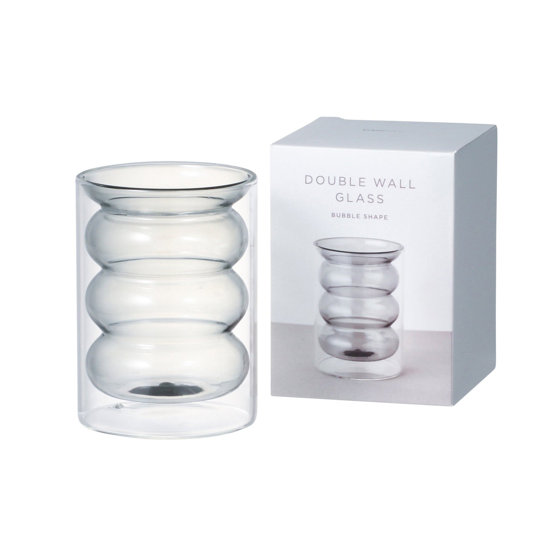 unique double wall glass with a round shape reminiscent of bubbles.Due to the double structure, even if you put a cold drink in it, it will not get wet easily and the table will not get wet. It's made of heat-resistant glass, so you can put hot drinks in it.