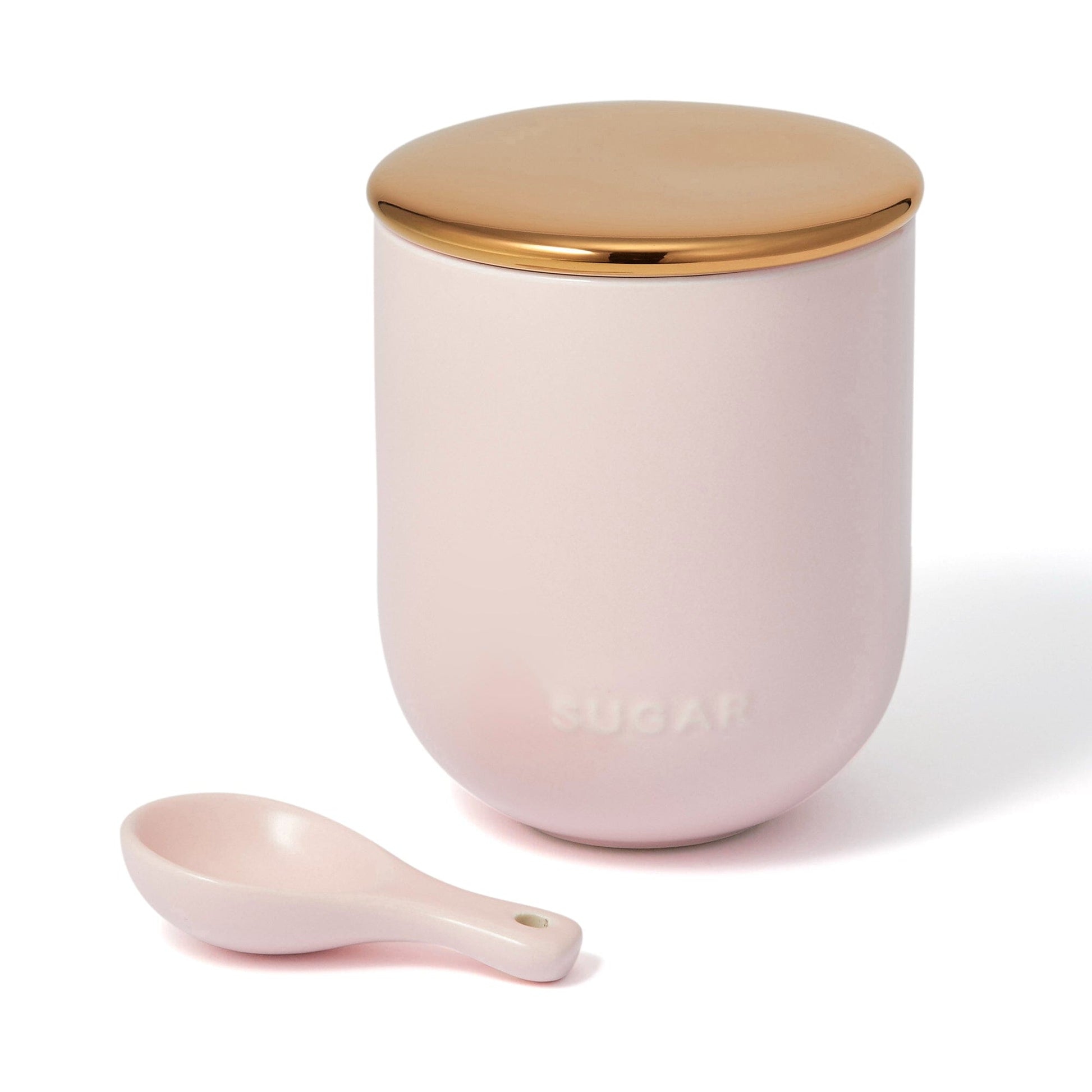 A canister with a simple design and a contrasting copper-colored lid.Comes with a cute pottery teaspoon for your convenience.