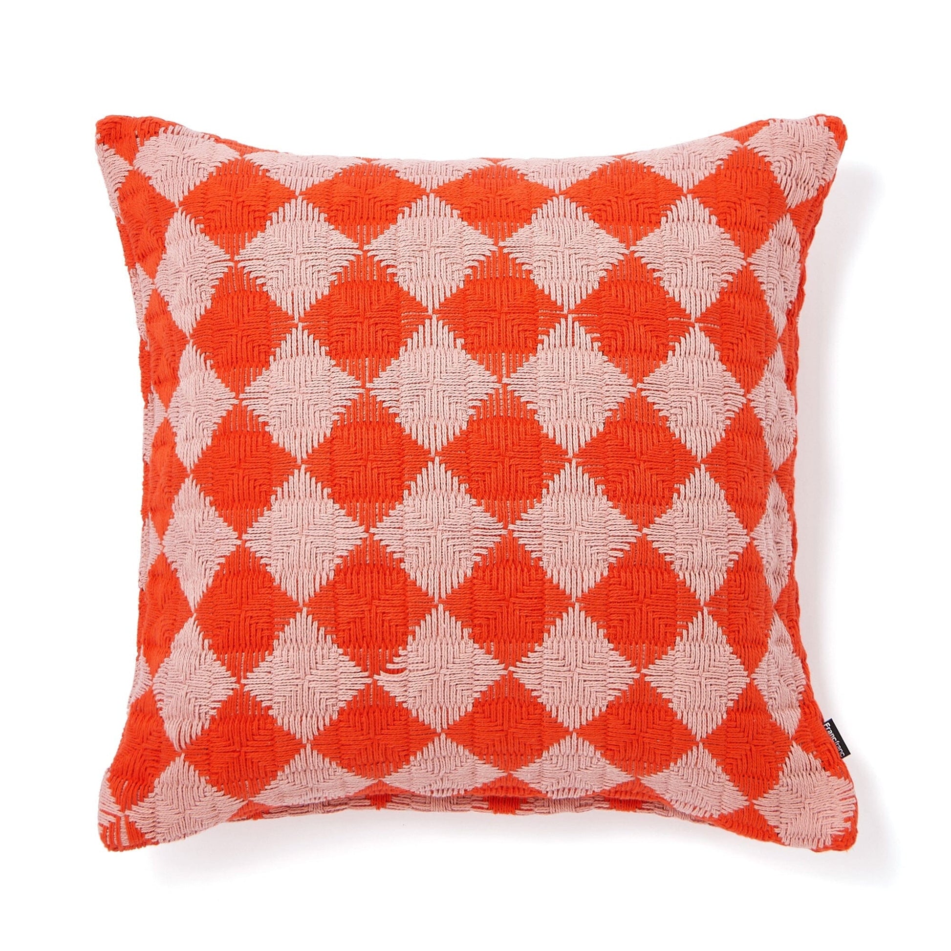 Cotton Diamond Cushion Cover 450 X 450 Orange X Pink