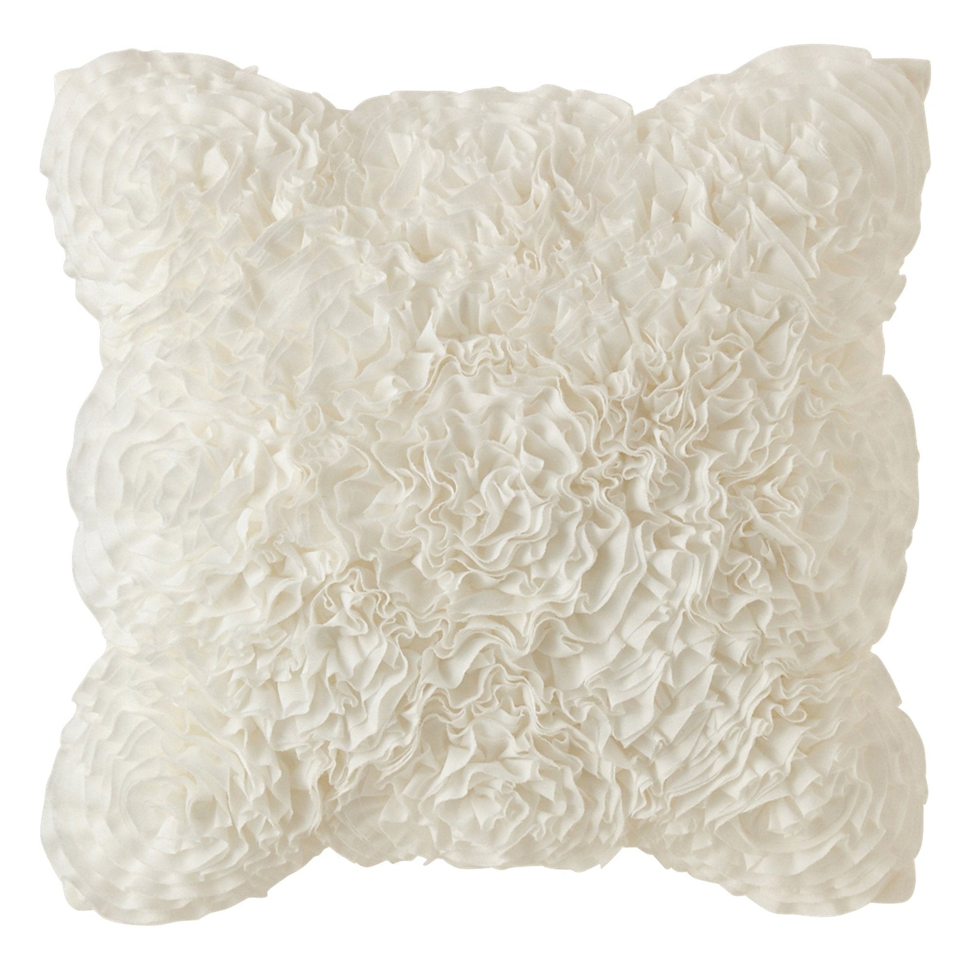 A fancy cushion cover in pure white. The flower shape and ruffle have added depth and texture to it. Easy for simple co-ordination with other modern furniture in your room. Perfect for creating a warm and comfy atmosphere.Specifications