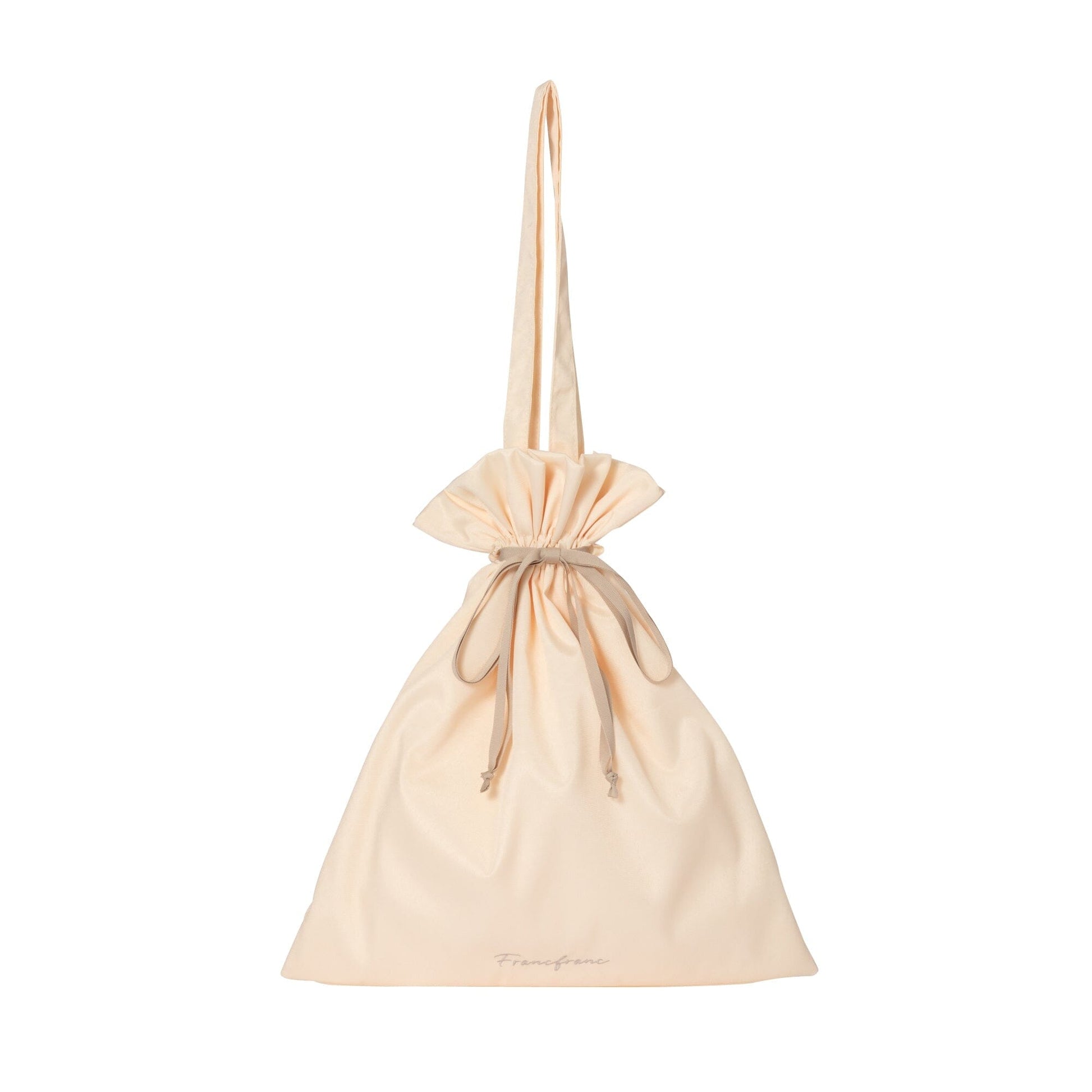 A tote bag that can be made into a drawstring purse with frills as the main point.2-way specification that becomes a trendy drawstring bag when squeezed tightly. You can easily change the atmosphere, so please enjoy it according to the fashion and purpose of the day.