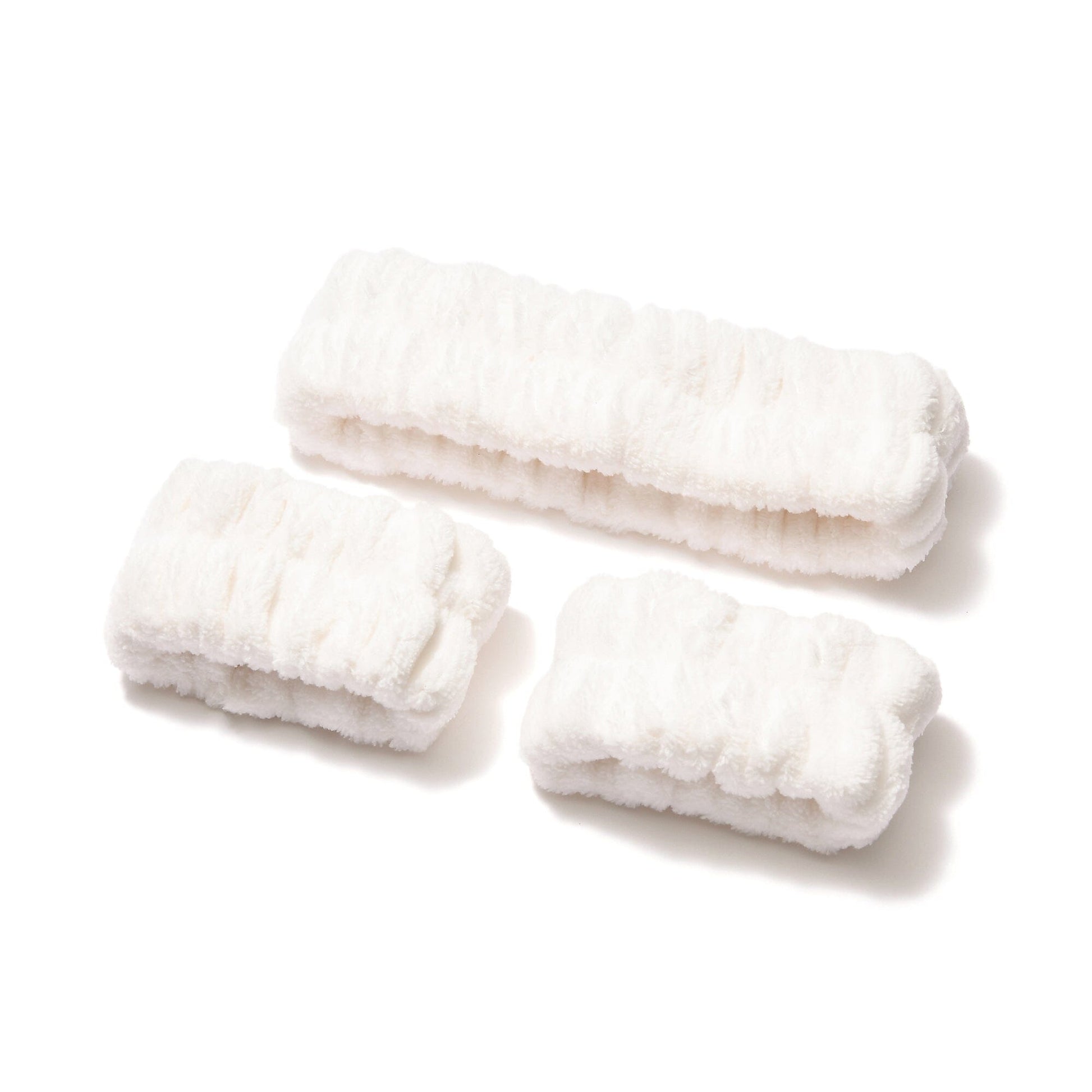 This is a hair band that keeps your hair together when washing your face or applying makeup, and an arm band that you can wear on your wrist to prevent your sleeves from getting wet when washing your face.By wearing a wristband, water will not drip when washing your face, and you can wash your face without getting your clothes or floor wet.