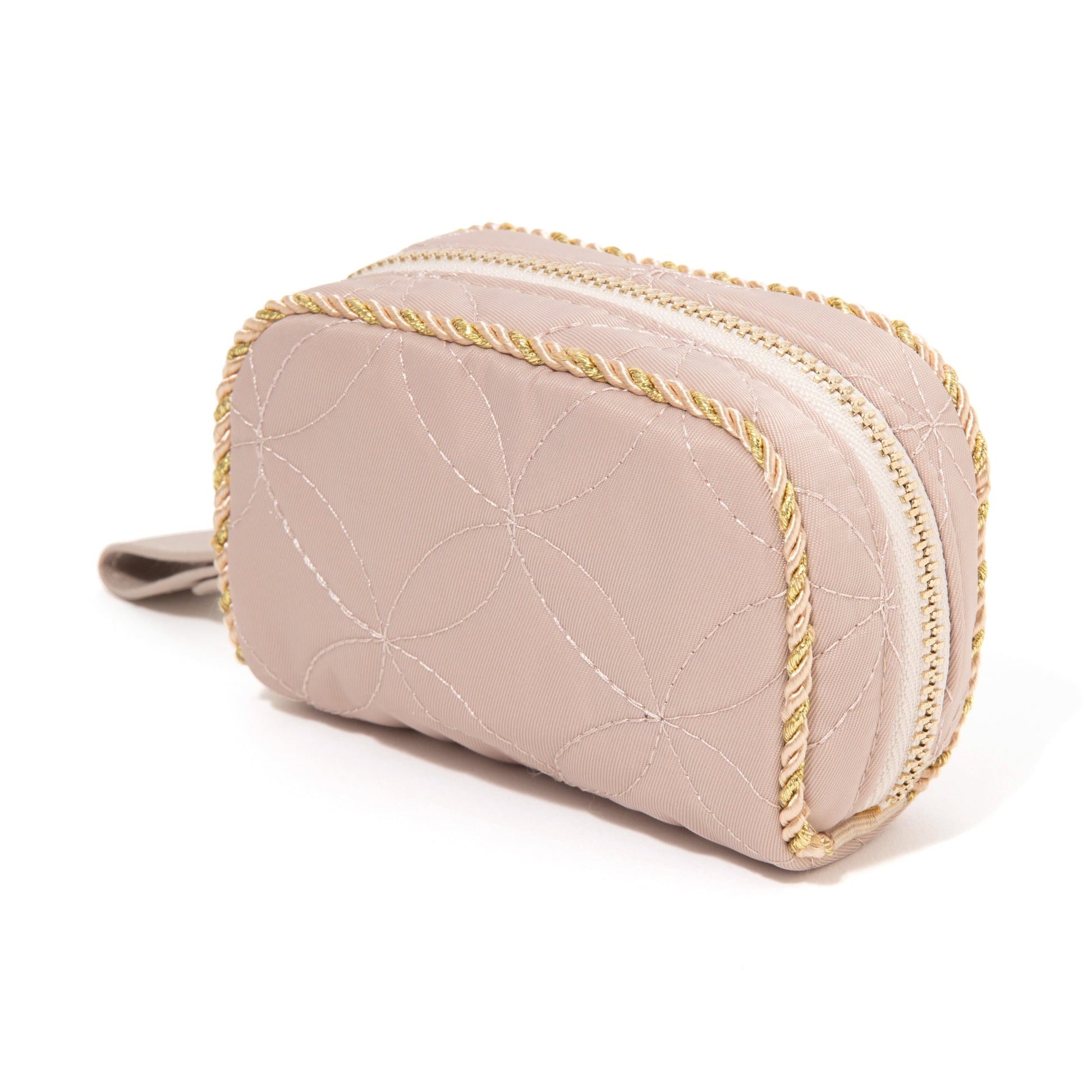 A palm-sized pouch with simple quilting that gives an elegant impression.It is convenient to carry because it can hold the minimum amount of cosmetics you need and can fit in a small bag.