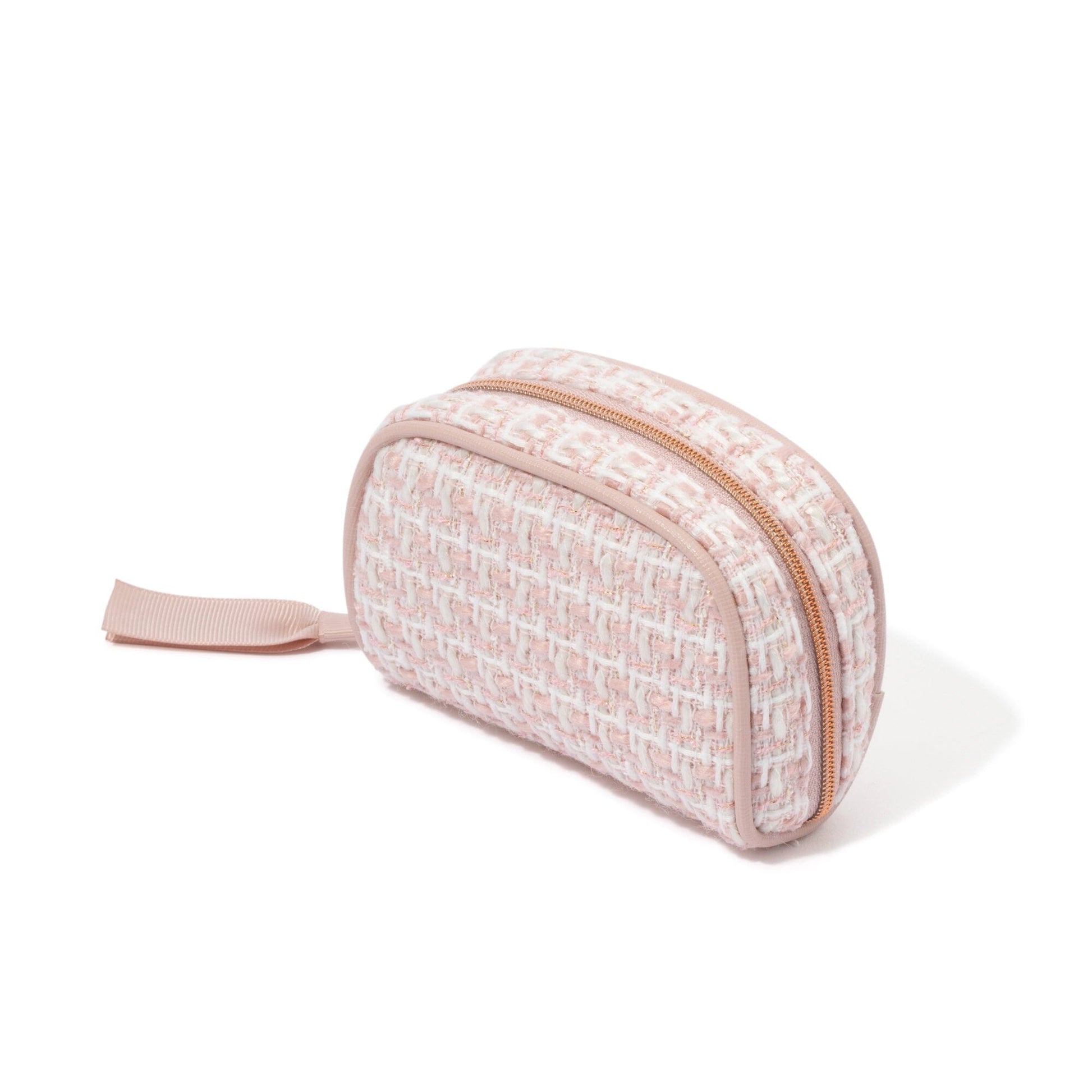 A palm-sized pouch made of tweed material that gives an elegant impression.It is convenient to carry because it can hold the minimum amount of cosmetics you need and can fit in a small bag.