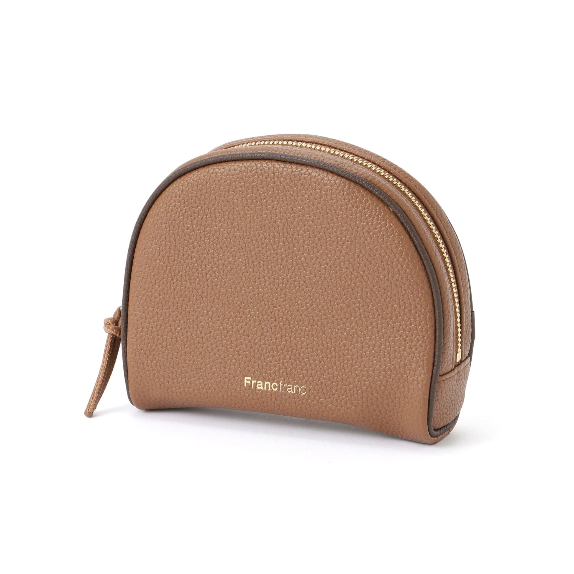 A two-color pouch made of synthetic leather that is stain resistant.It is a simple design, but it has some points such as charms and tags inside.