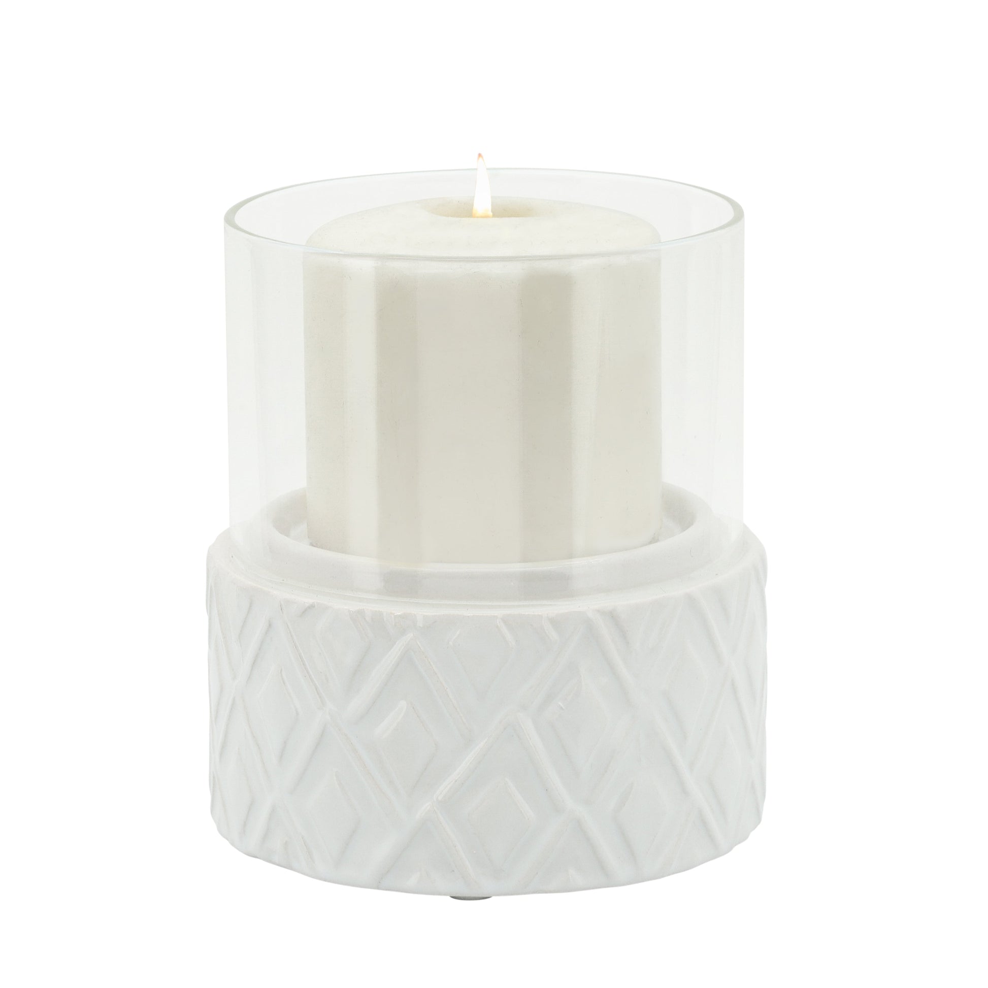 White Ceramic /Glass 5" Pillar Holder, Diamond