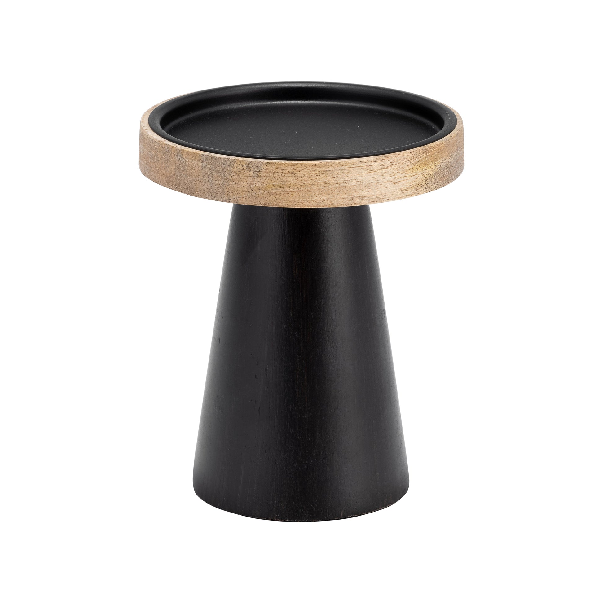 Wood, 6" Flat Candle Holder Stand, Black/Natural