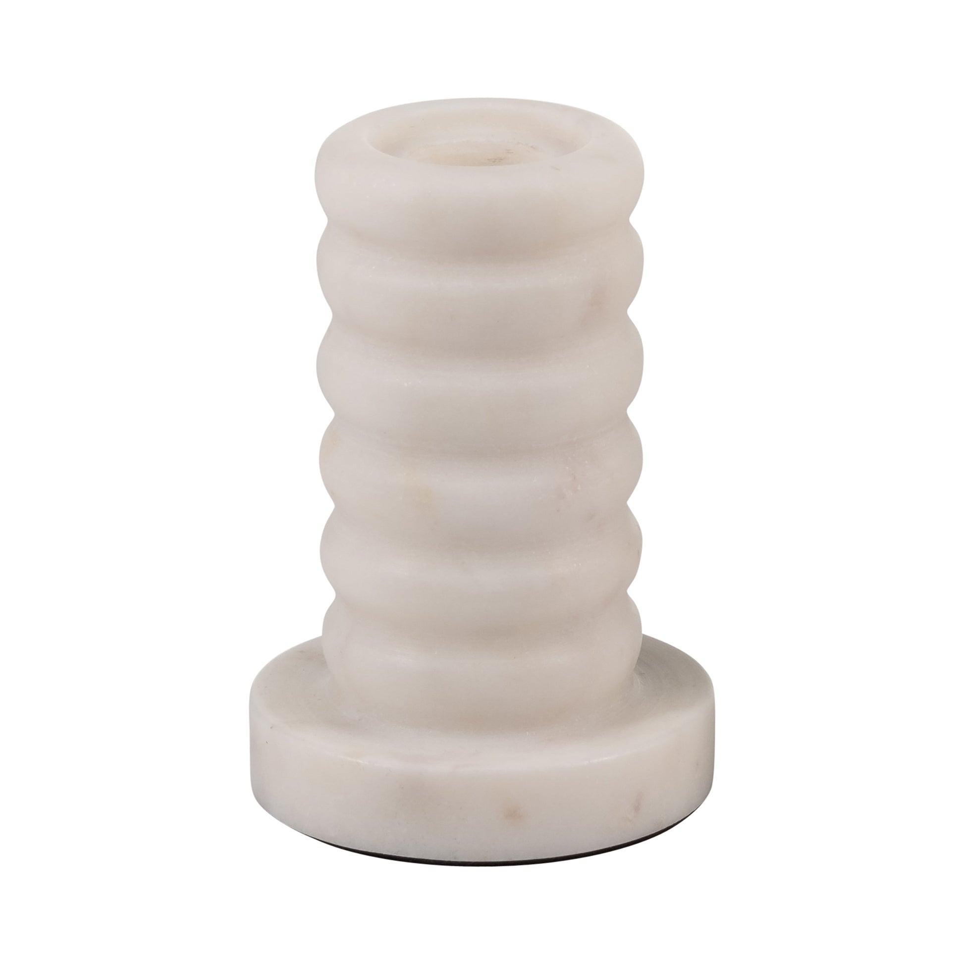 Marble,4"H,Ribbed Taper Candle Holder ,White