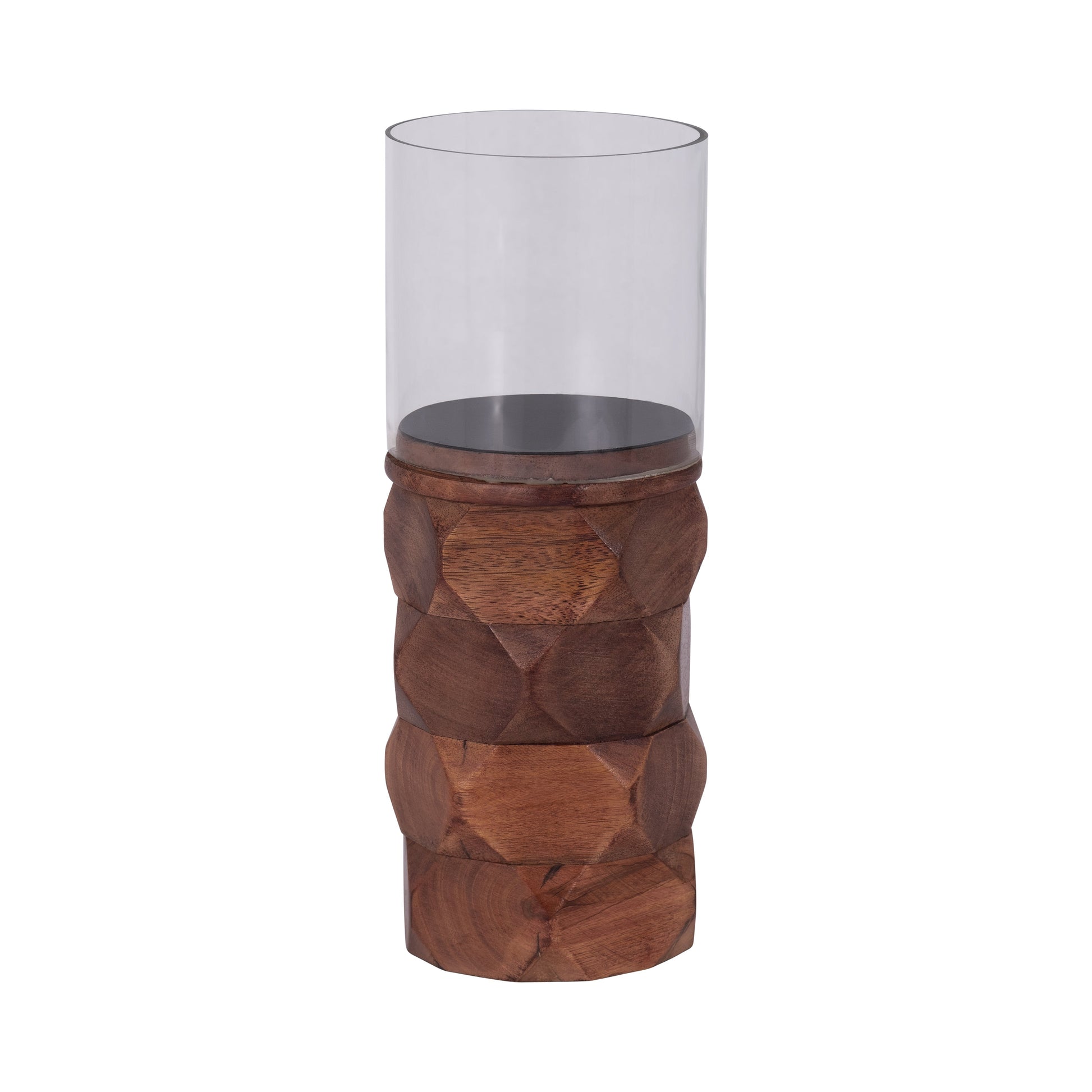 Wood, 10" Stacked Hexagon Pillar Hurricane, Brown