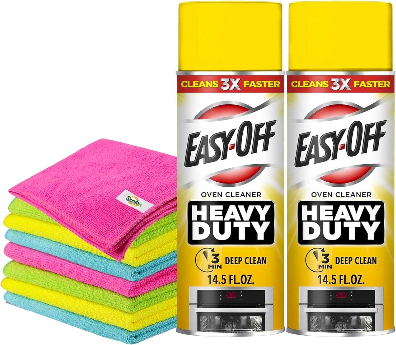HEAVY DUTY OVEN CLEANER: Easy Off Oven Cleaner is specially formulated to penetrate the toughest burned-on grease and oven stains, simply spay some Easy off cleaner and and wipe with the Scrubit Microfiber Cleaning Cloths and youll have those stains and grease off in seconds.