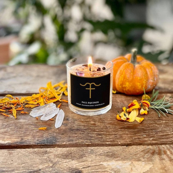 INGREDIENTS Cotton wick, GMM-free soy wax, organic coconut oil, proprietary blend of organic essential oils, botanicals, & mica encasing a crystal charged under the full moon..
