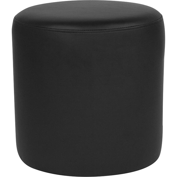 Barrington Upholstered Round Ottoman Pouf in Black LeatherSoft