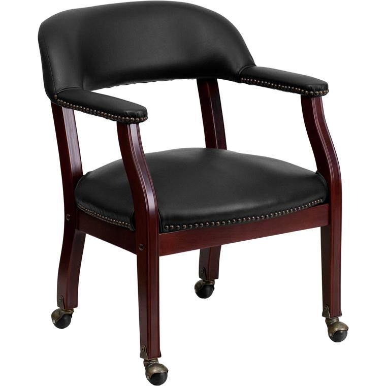 Black Vinyl Luxurious Conference Chair with Accent Nail Trim and Casters