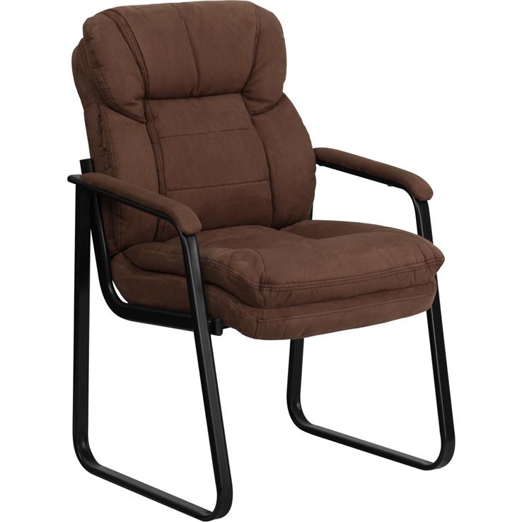 Brown Microfiber Executive Side Reception Chair with Lumbar Support and Sled Base