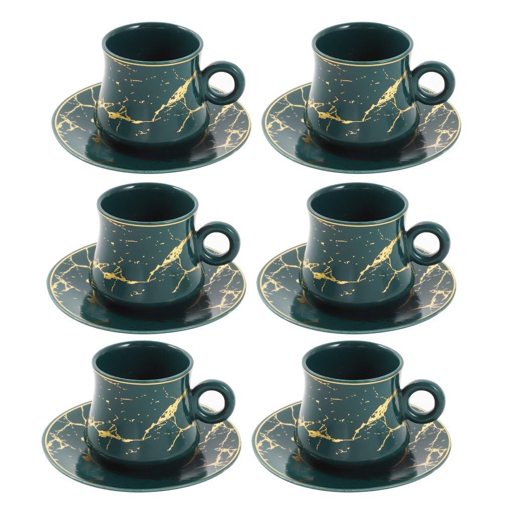 Ceramic Tea and Coffee Cup and Saucer Set of 6 pcs Turquoise Marble Design 100 ml