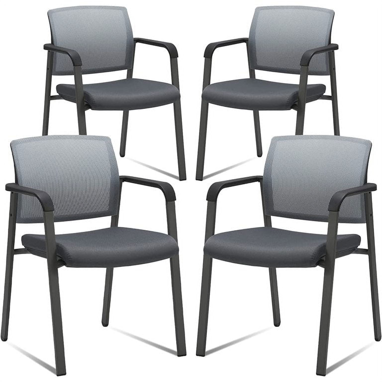 CLATINA Mesh Back Stacking Chairs with Arms and Ergonomic Lumber Support for Office School Church Guest Reception,Gray 4-Pack
