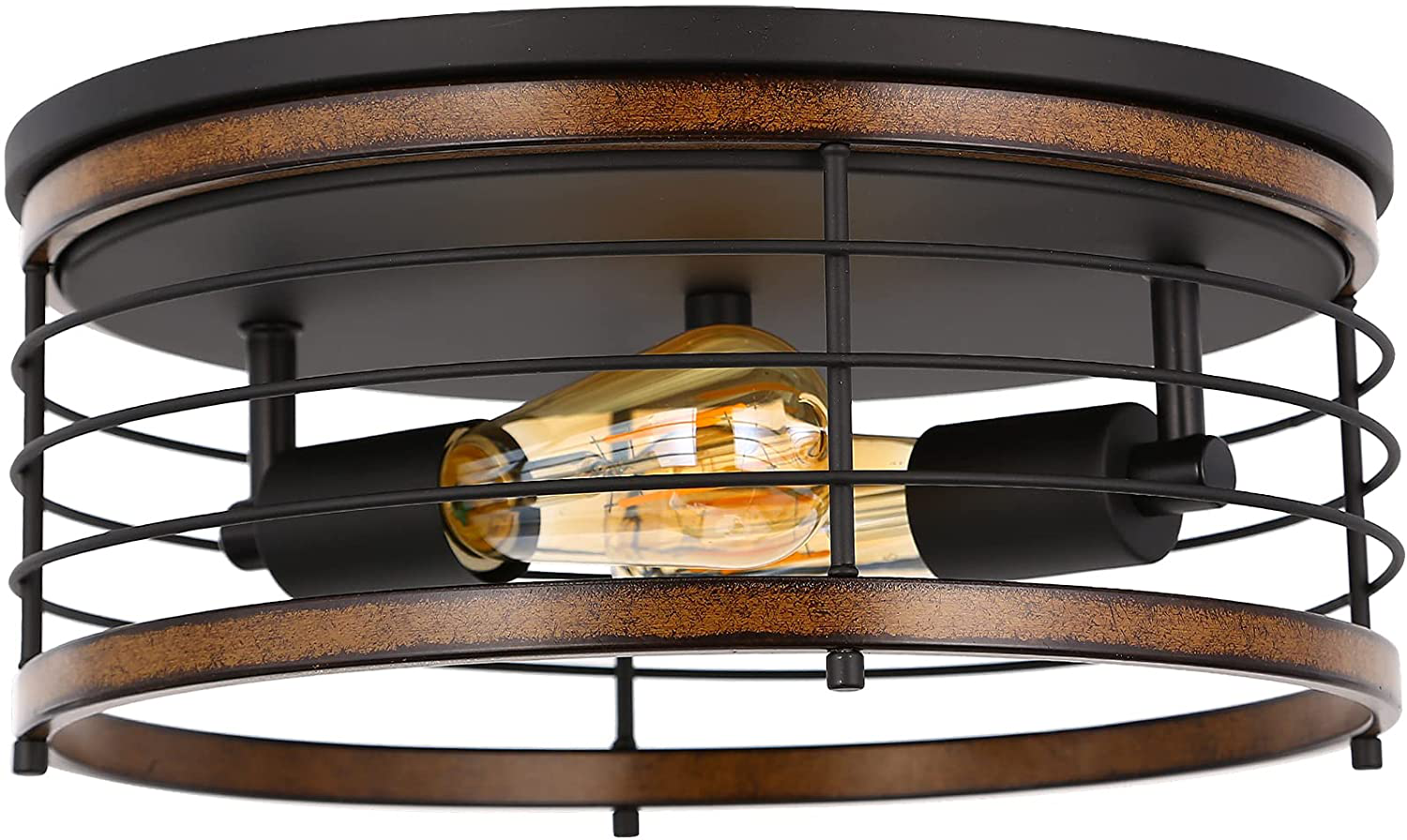 - �?STUNNING OPEN DESIGN - This 2-light flush mount fixture brings industrial and vintage style to any home with its unique wire cage design.Round metal cage provides ample light projection and revealing exposed bulbs. Easier to replace bulbs and clean.