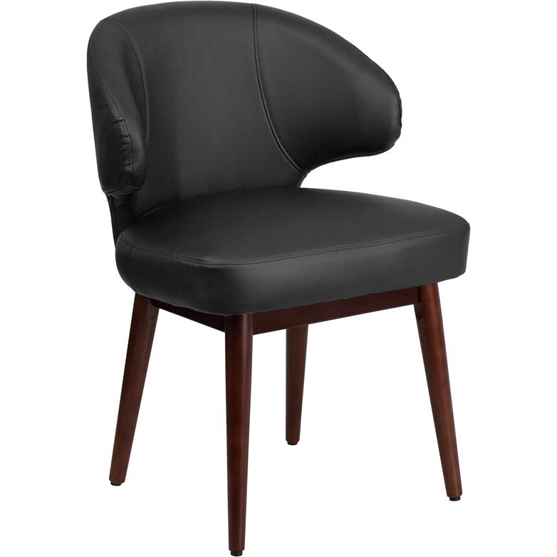 Comfort Back Series Black LeatherSoft Side Reception Chair with Walnut Legs