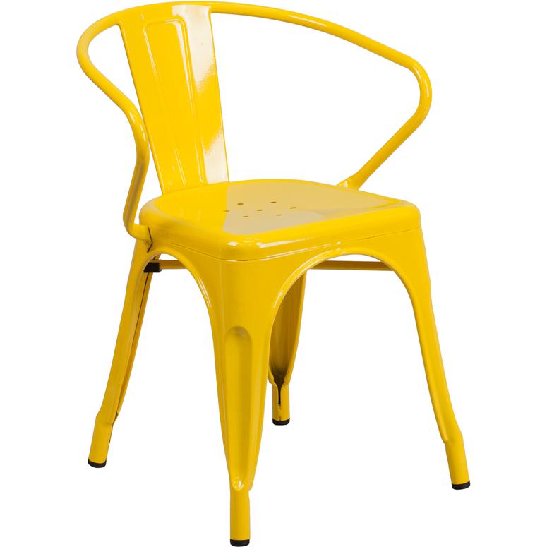 Commercial Grade Yellow Metal Indoor-Outdoor Chair with Arms