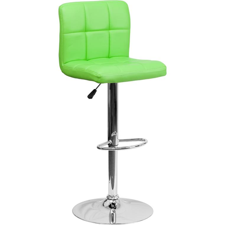 Contemporary Green Quilted Vinyl Adjustable Height Barstool with Chrome Base