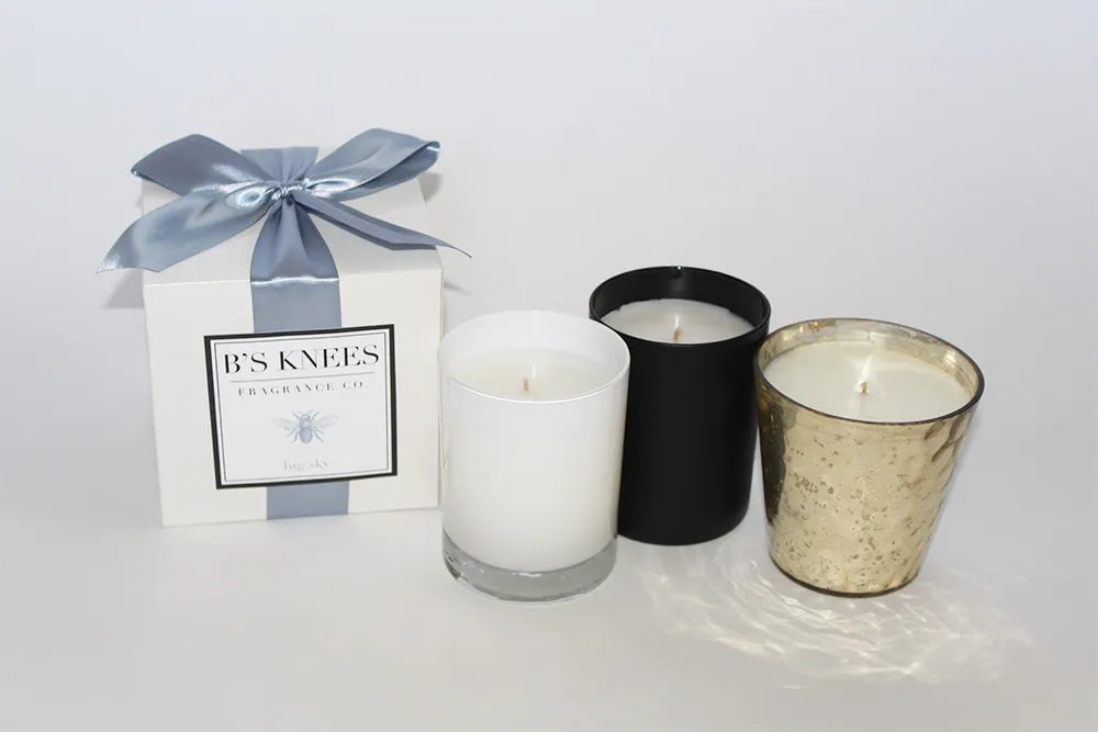 This scent evokes thoughts of fresh air, blue skies and wide-open spaces. Notes of jasmine, cyclamen, and lavender combined with warm vanilla, musk and sun-drenched amber. Breathe in and enjoy! One wick/white.