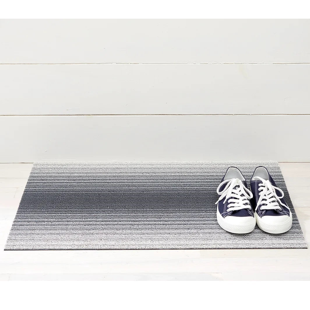 Inspired by the play of light and shadow created by shifting sunbeams, Fade redefines stripes through its dynamic ombré effect. Tufted bi-color yarns, which combine multiple hues along a single strand, form fine lines of varying widths and intensities within a richly textured surface. Shag mats are ideal for bathrooms, outdoor terraces, pool areas, and entryways. Good in all weather and quick to dry. Resistant to mold, mildew, and chlorine. Suitable for indoor and outdoor use.