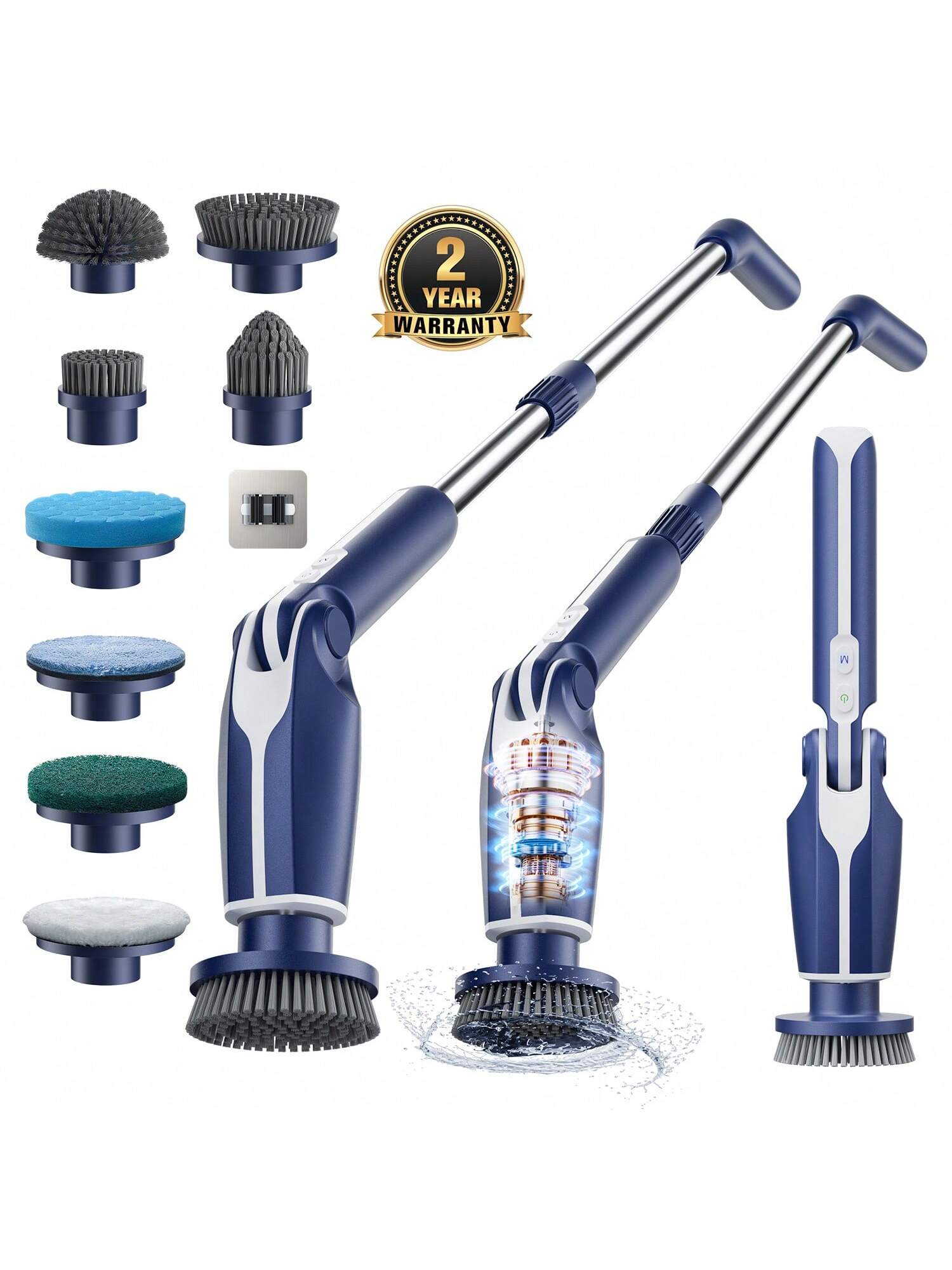 Leebein Electric Spin Scrubber, 2024 Upgraded Electric Scrubber For Cleaning, Spin Scrubber With Long Handle & 8 Replaceable Brush Heads, Remote Control Shower Cleaner Brush For Bathroom, Floor