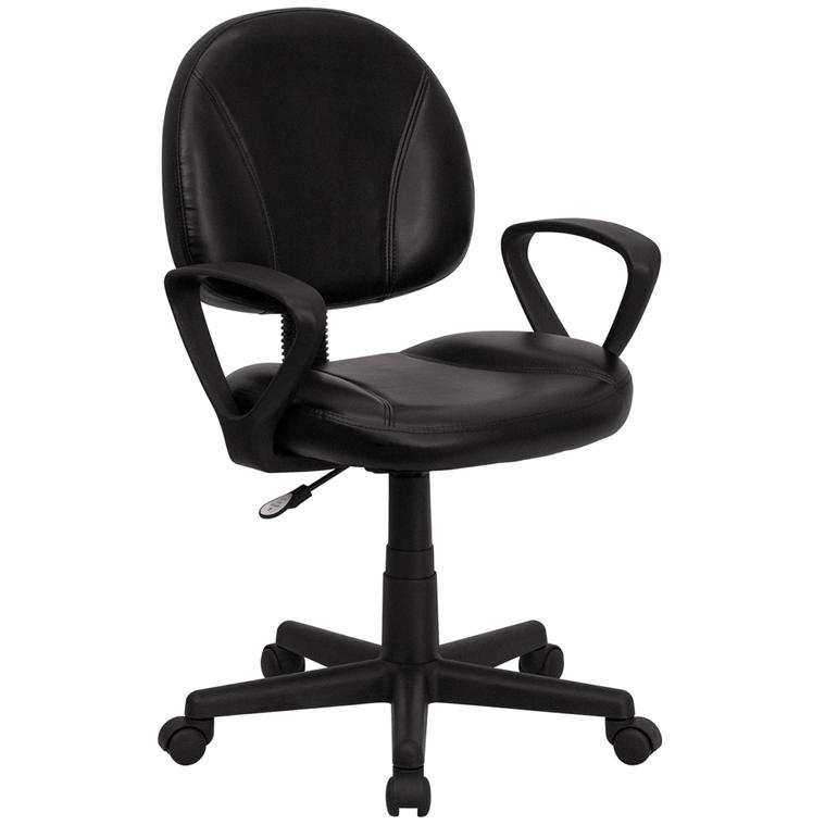 Mid-Back Black LeatherSoft Swivel Ergonomic Task Office Chair with Back Depth Adjustment and Arms