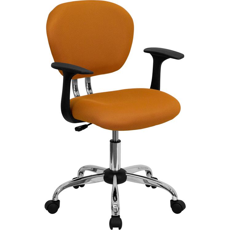Mid-Back Orange Mesh Padded Swivel Task Office Chair with Chrome Base and Arms