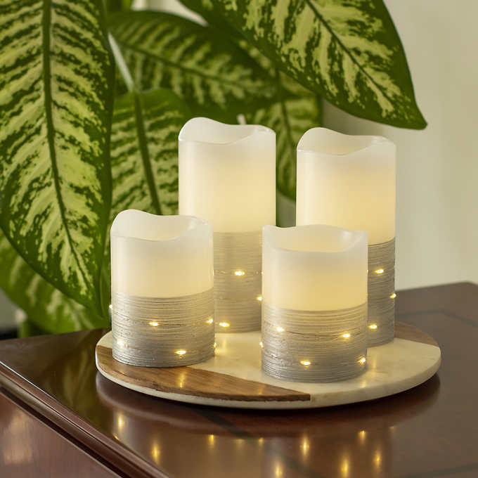 - Set of 4 Flameless LED Wax Pillar Candles in 2 Sizes