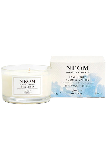 Neom Organic Real Luxury Scented Candle (Travel) is a combination of 21 essential oils, all chosen for their ability to make you feel pampered, for this sophisticated and distinctive Neom signature blend. Jasmine is an oil long celebrated for its ability to lift the spirits and inspire optimism. For this unique blend we coupled it with rosewood, a comforting and warming oil with a balancing effect on the mind and body and ultra-relaxing lavender.