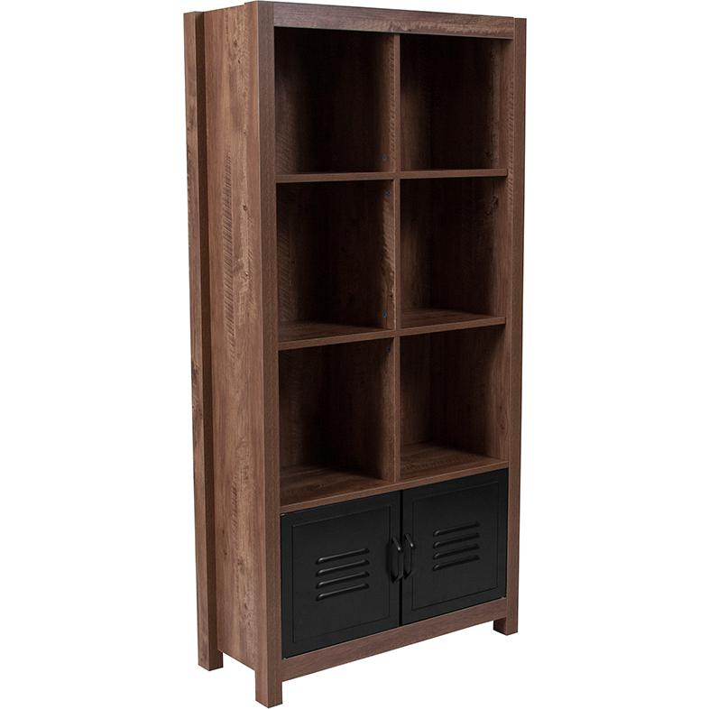 New Lancaster Collection 59.5"H 6 Cube Storage Organizer Bookcase with Metal Cabinet Doors in Crosscut Oak Wood Grain Finish