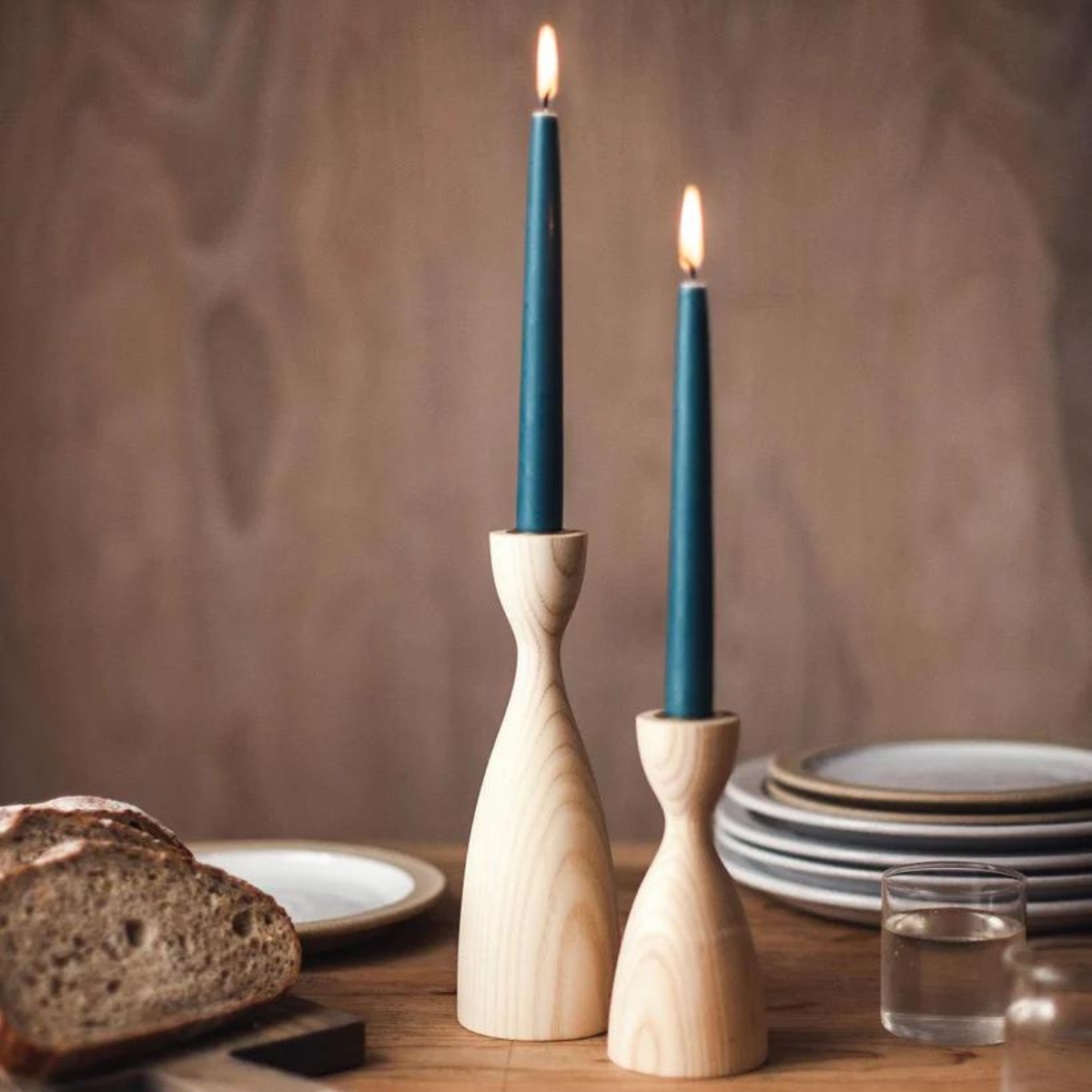 Simultaneously classic and modern, these ash candlesticks set the scene for a sophisticated tabletop.