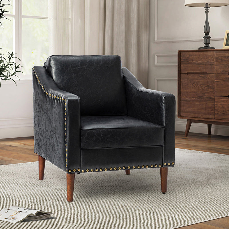 This chair is a great addition to any room. Our elegant armchair features a wide back along with sloped arms to create a comfortable chair that would go perfectly with your living room furniture or even bedroom furniture. The armchair with skin-friendly leather is filled with high-density foam and a built-in spring system that provides more comfortable seating experiences. At the same time, the solid legs and sturdy manufactured frame make the chair more stable. Moreover, both the seat and back cushions are removable, and the core of the cushions can be taken out. This chair with its transitional design works in most homes adding a decorative accent to any room for a luxurious statement. The armchair for the living room, bedroom, and home office is made with a premium easy-to-care-for leather that is both stylish and durable for a lavish design that built to last.