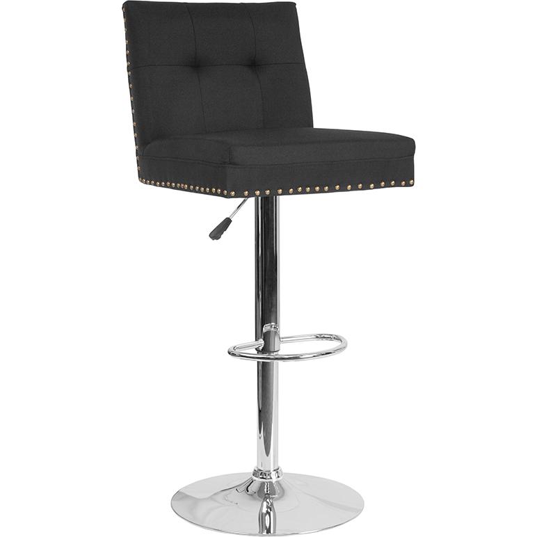 Ravello Contemporary Adjustable Height Barstool with Accent Nail Trim in Black Fabric