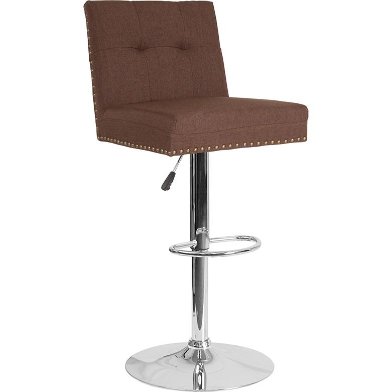 Ravello Contemporary Adjustable Height Barstool with Accent Nail Trim in Brown Fabric