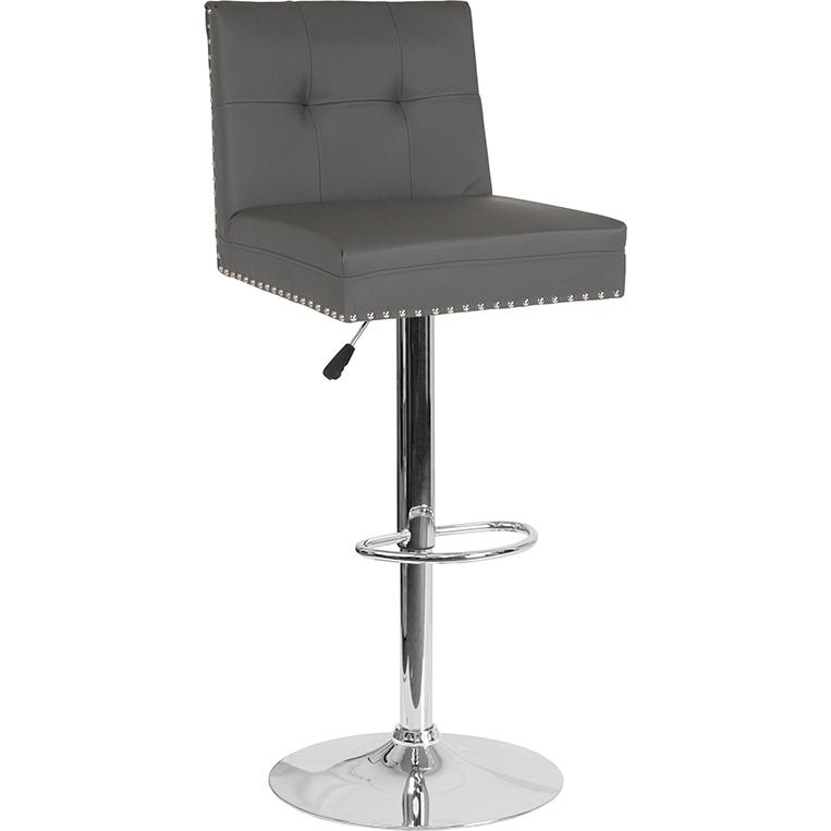 Ravello Contemporary Adjustable Height Barstool with Accent Nail Trim in Gray LeatherSoft