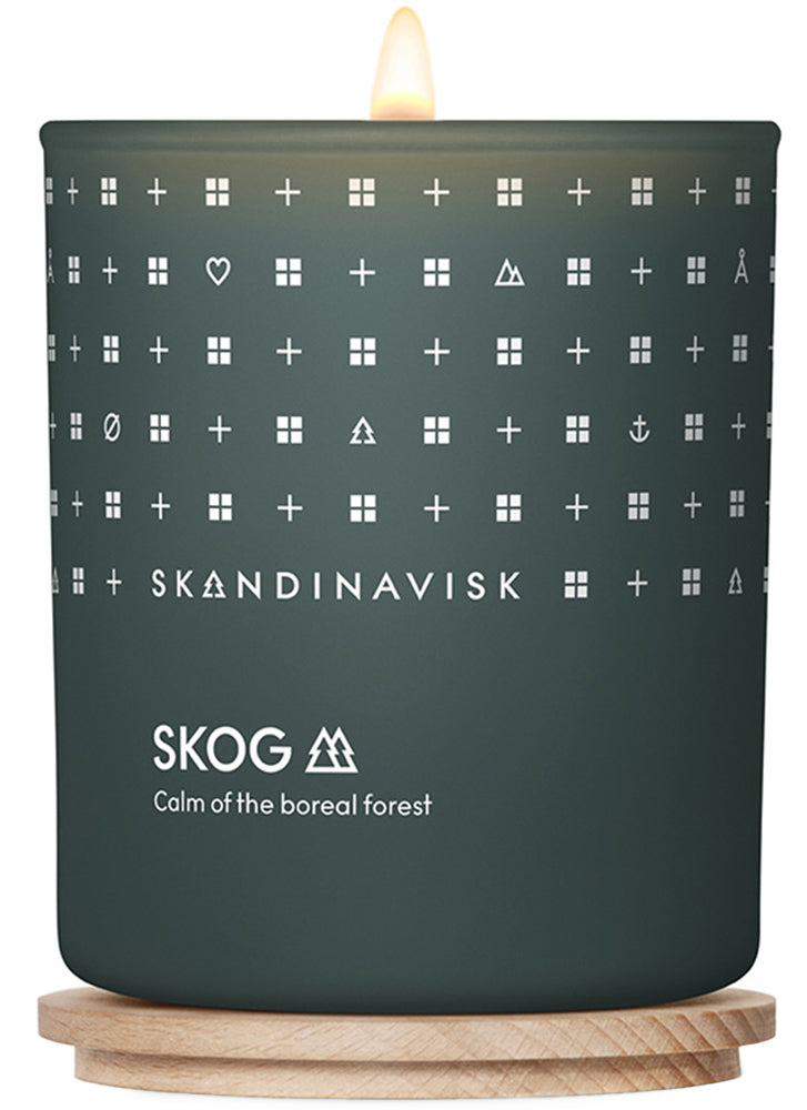 Skandinavisk Skog Scented Candle is a perfume and Swedish rapeseed wax blend in painted glass with a pure cotton wick and engraved beechwood lid. The local Swedish rapeseed wax is sustainably farmed, traceable and non-GMO for the lowest environmental impact.