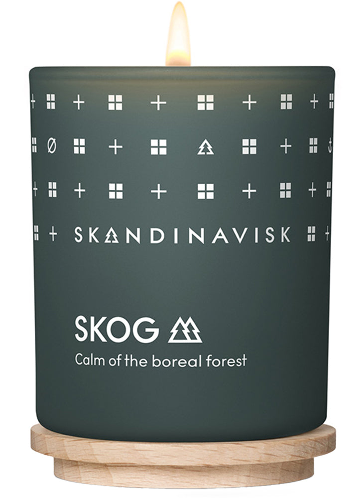 Skandinavisk Skog Scented Candle is a perfume and Swedish rapeseed wax blend in painted glass with a pure cotton wick and engraved beechwood lid. The local Swedish rapeseed wax is sustainably farmed, traceable and non-GMO for the lowest environmental impact.