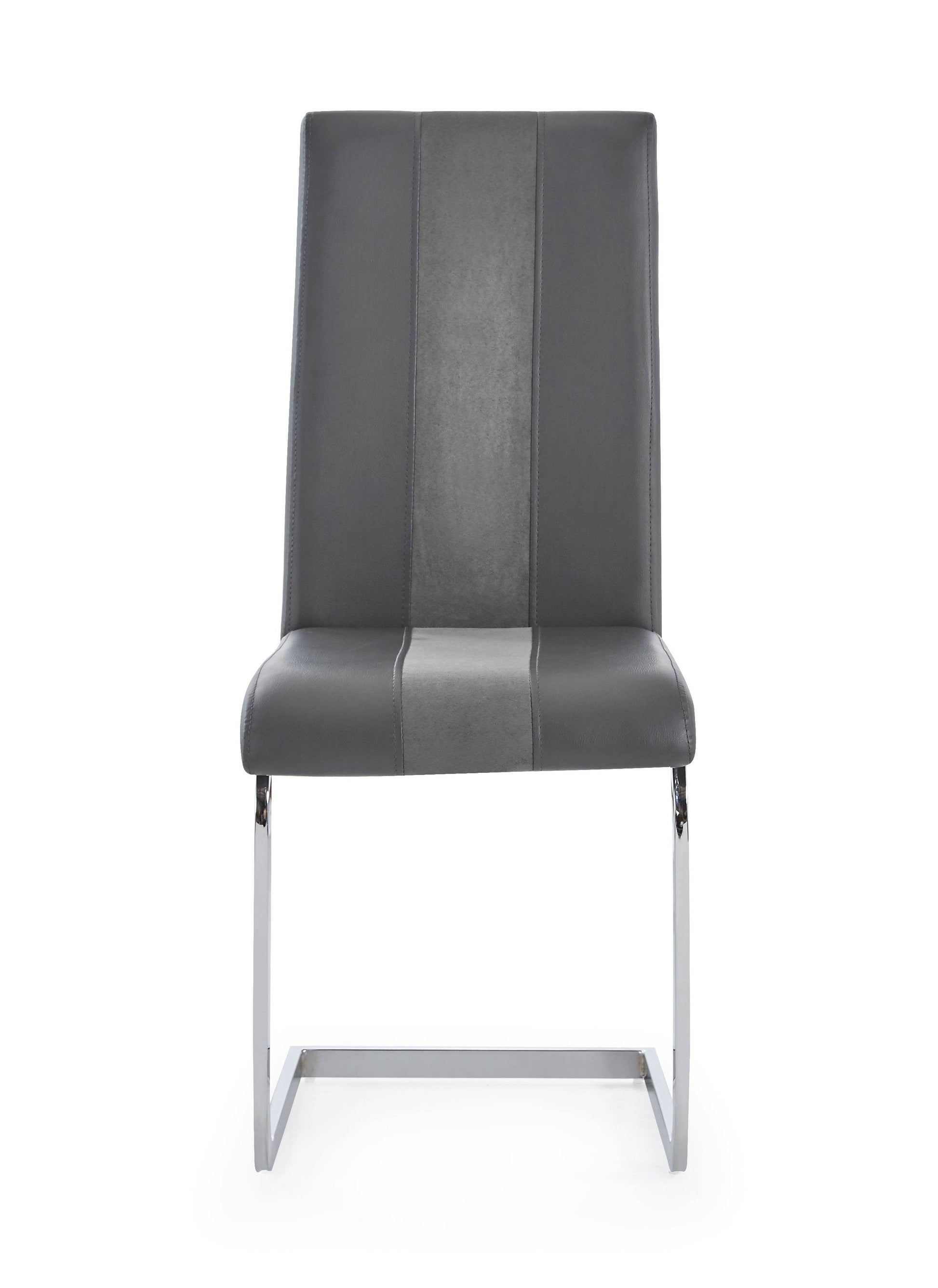 Introduce a touch of modern elegance to your kitchen or breakfast nook with this two-toned dining chair. Featuring a captivating blend of grey faux leather (PU) and fabric upholstery, this chair adds a contemporary twist to traditional kitchen seating. The attractive tones of this chair offer limitless decorative possibilities, while its sleek silver-toned metal base and ample padding exude a delightful look and provide ultimate comfort. Crafted with utmost precision, this chair guarantees durability and long-lasting wear. For a chic and modern upgrade to your kitchen or dining room furnishings, this chair is the perfect choice for comfortable seating.