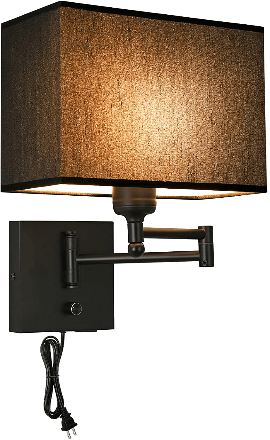 - 【Merge Function and Fashion】This wall lamp with plug in cord features an adjustable swing arm allow for light at a variety of angles position. And built in USB charging port (5V/2.1A) is a bonus, for any electronic devices, such as your tablet, mobile phones, headsets, diffuser, speaker or other electronics, whether these wall lamps are on or off.