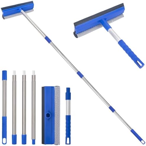 【Reach High Windows with Ease】 This window washer features a sturdy steel handle that can be adjusted in length from 29 inches to 56 inches by removing or adding sections to suit windows of different heights, and it includes an additional hand-held handle for ground-level window or car windshield cleaning.(Note: Package contains only one squeegee head.)